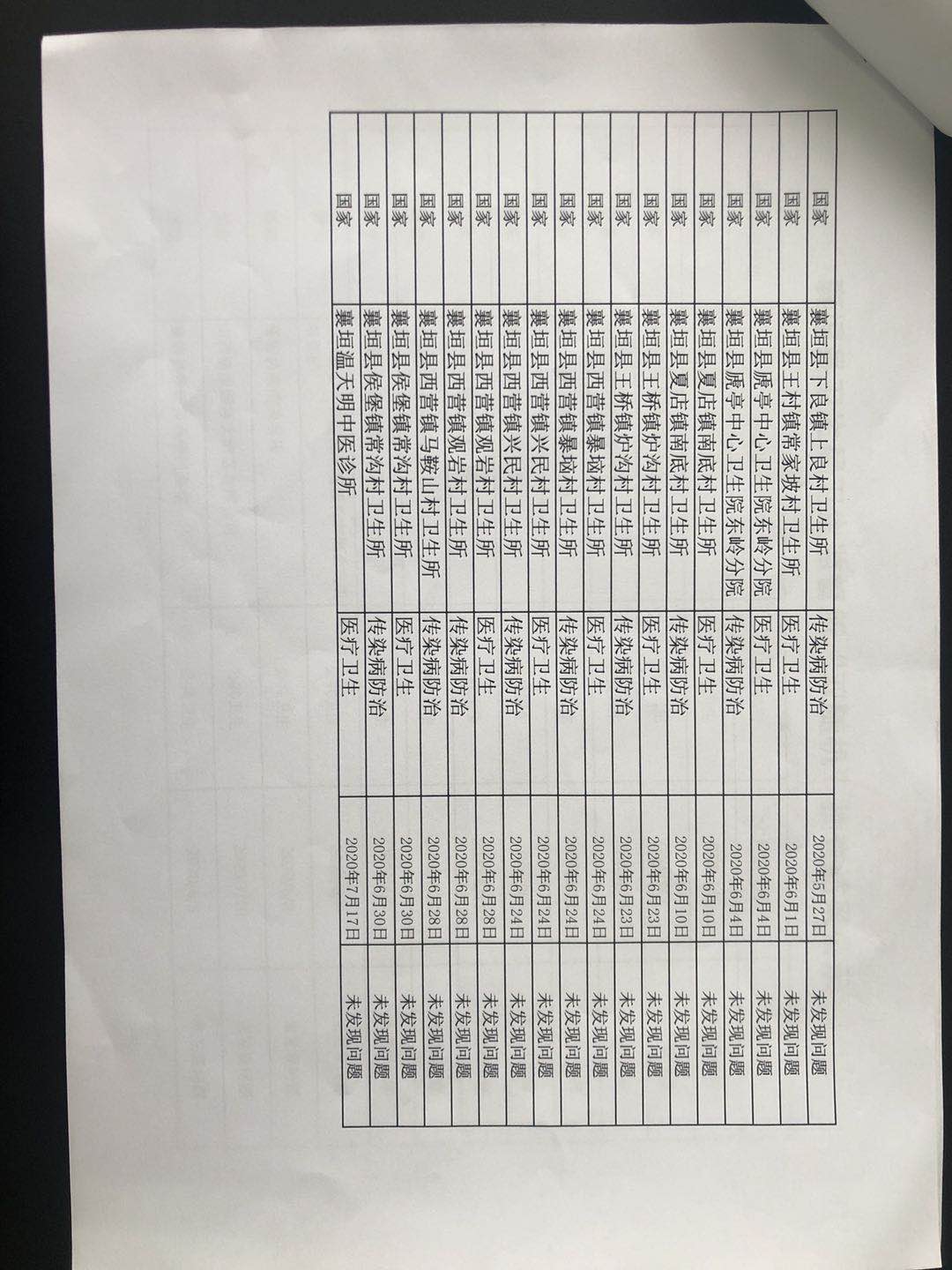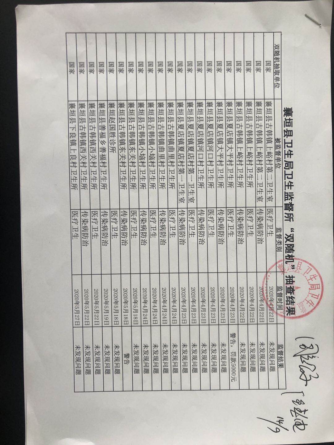 襄垣县卫生局卫生监督所“双随机”抽查结果公示