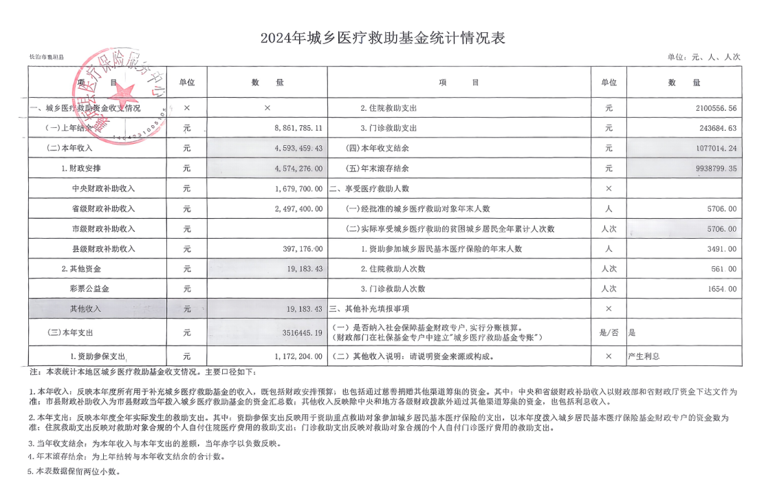 2024年城乡医疗救助基金统计情况表